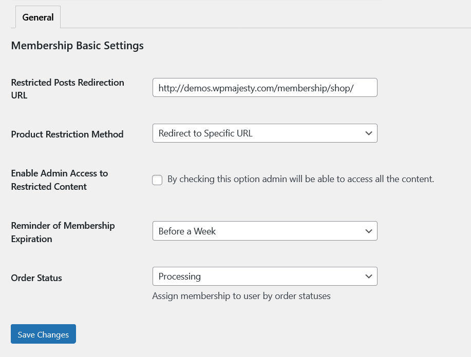 Membership Expires in: Specify membership expiration duration or leave empty for the lifetime membership.