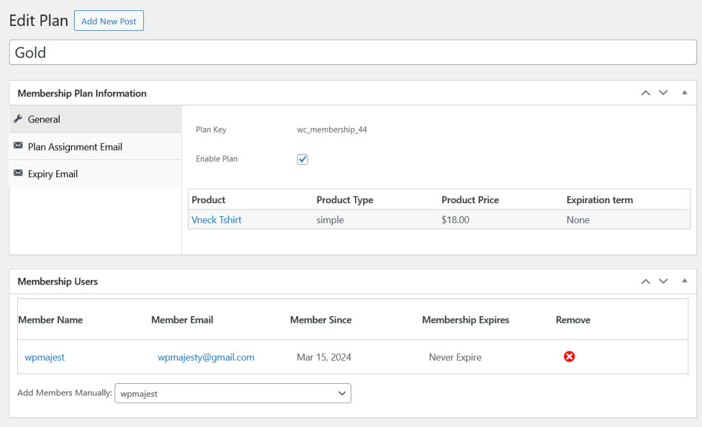 Member Users: Below are the list ofthe member related to that specific membership plan.