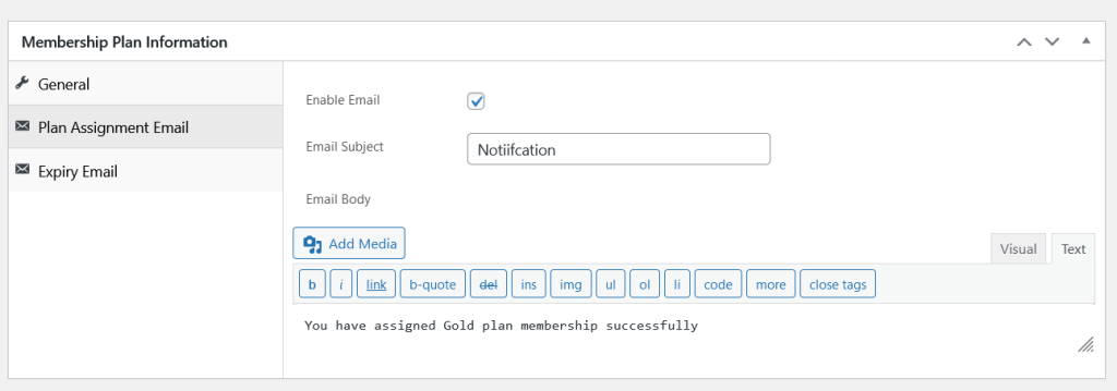 Enable Email: Check this option to enable the email when the plan assigned to any member.