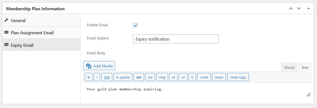 Enable Email: Check this option to enable the email when the membership is expiring of any member.