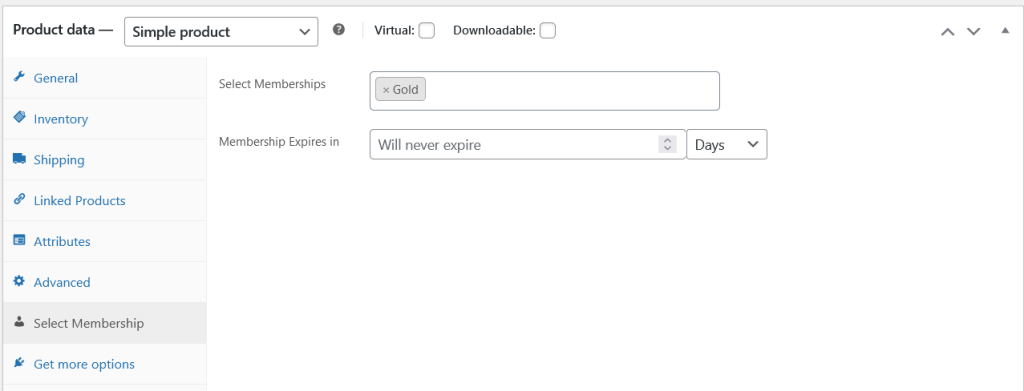Select Memberships: Choose memberships for the products, so when the customers buy that product they will get the specified membership plans.